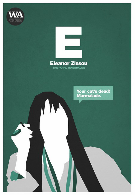 Wes Anderson filmlerinin kendine özgü ve çarpıcı bir görsel tarzları olduğunu inkâr etmek güç. Tenenbaum Ailesi ve The Darjeeling Limited gibi filmlerde gönüllerimizde taht kurmuş olan Anderson’ın son filmi Moonrise Kingdom ne yazık ki vizyona girdiği gibi kayboldu. Ama bu sırada dileyenler Madridli sanatçı Hexagonall‘ın hazırladığı “Wes Anderson Alphabet”iyle (Wes Anderson Alfabesi) Anderson ihtiyaçlarını giderebilirler. Henüz tamamlanmamış olan alfabede her harf bir Wes Anderson karakterine tekabül ediyor. (Tahmin edin W kim!) Aşağıda Flavorwire’ın seçkisini görebilirsiniz. Tüm çalışmalar için buraya, poster satın almak için de buraya buyurun.
