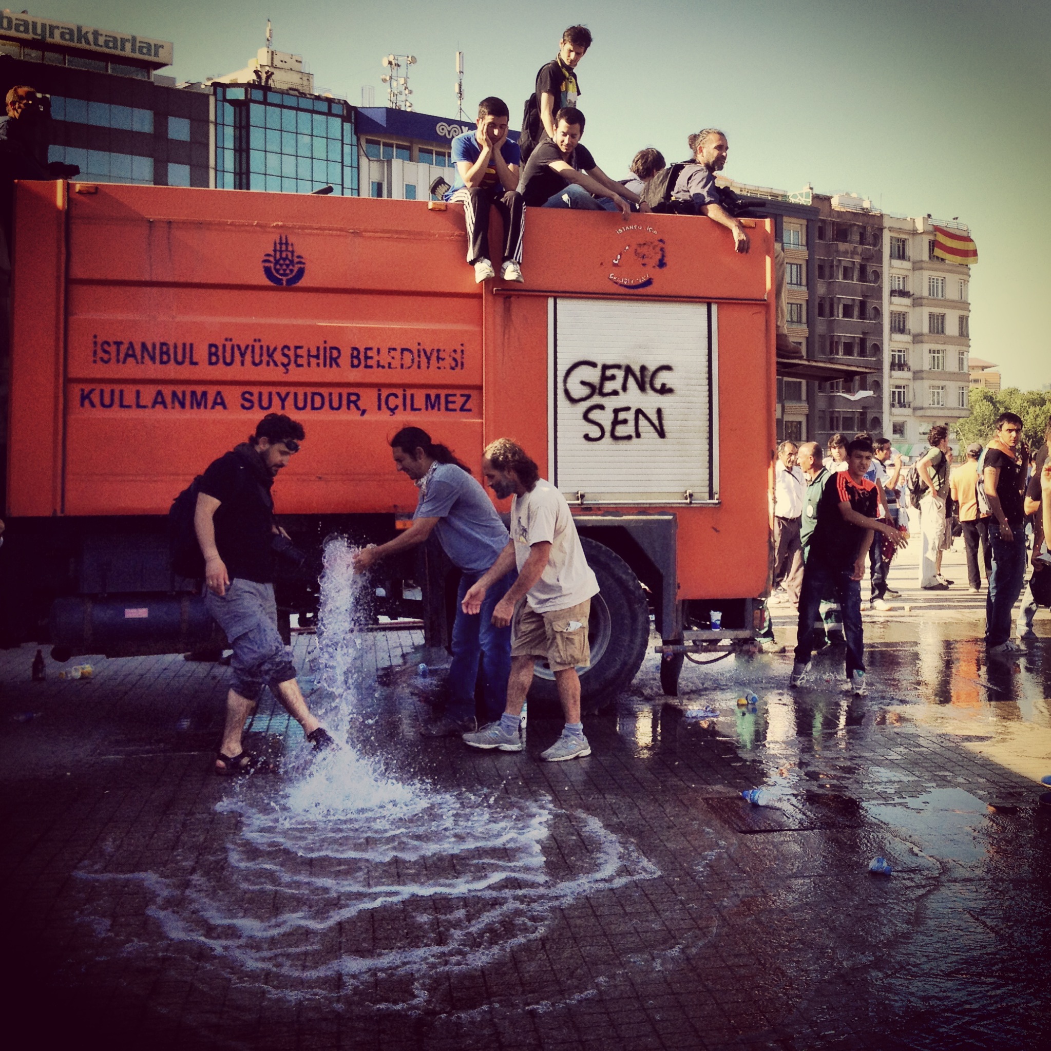 31 Mayıs’ta başlayan Gezi Parkı Direnişi, bugün de devam etti. Gitgide büyüyen kalabalık, polis meydandan çekilene kadar yılmadı. Şimdi de direnerek çıkmayı başardıkları meydanda bir bayram havasında kutlama yapıyorlar. Aşağıda, bizim Taksim’de çektiğimiz fotoğrafları görebilirsiniz.