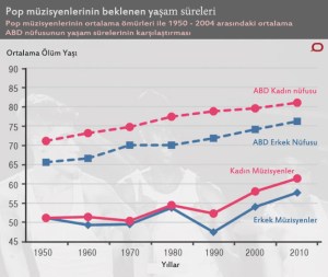 Araştırmanın sonuçları rahatsız edici. Ortalama bir pop müzisyeninin yaşam süresi, ortalama bir ABD vatandaşına göre 25 yıla kadar kısalabiliyor. Cinayet toplumun geneline göre çok daha sık görülüyor, kazaların oranı ise sıradan insanlara göre 5 ila 10 kat daha yüksek. Pop müziğin ne kadar tehlikeli bir iş kolu olduğu konusunda bir çıkarım yapmak, salt istatistiklere göre hiç de yanlış değil gibi.
